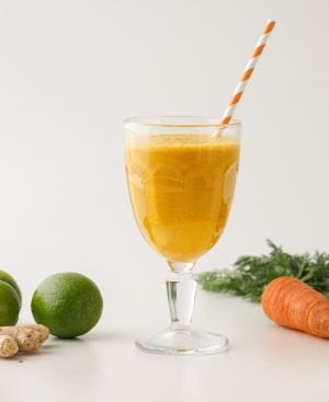 Suco de cenoura, limão, gengibre e hortelã pimenta
