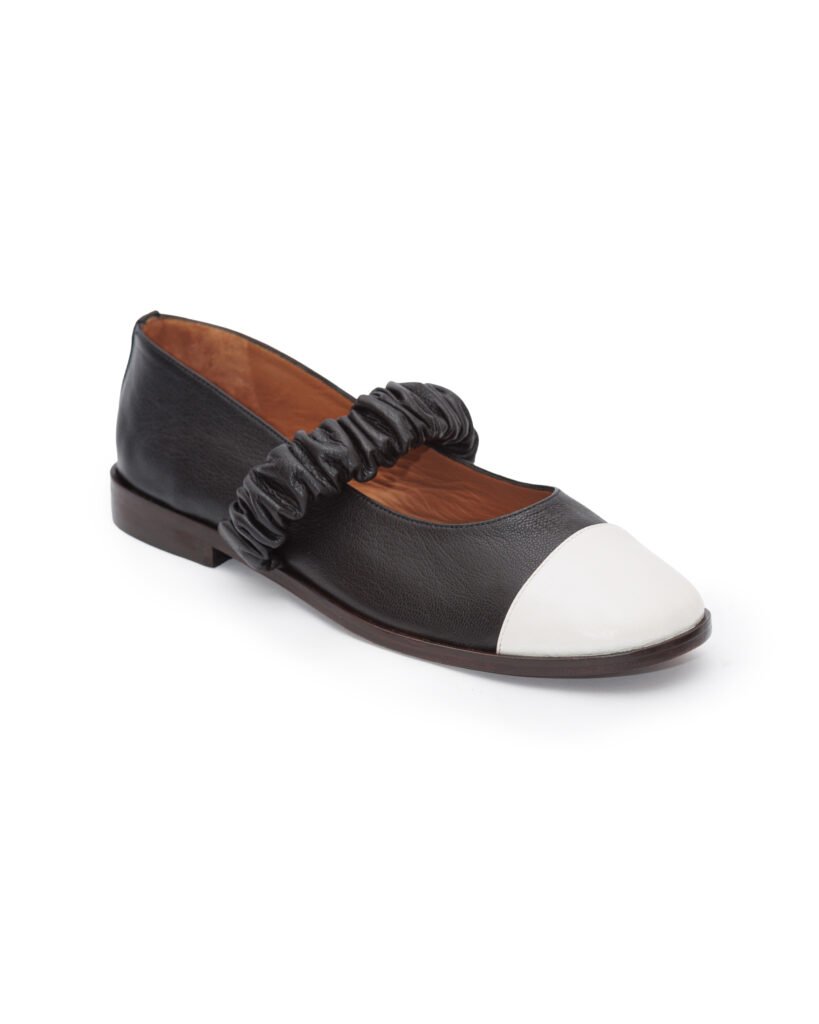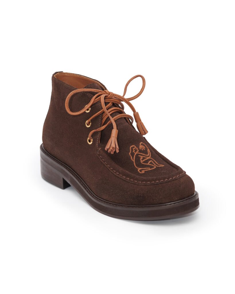 Com uma edição limitada de peças, a bota de camurça e sola de couro foi criada no desenho de um coturno, com um toque feminino e delicado que é realçado pelo bordado presente no cabedal, vista na coleção de inverno da missinclof. Já a sapatilha de couro também se diferencia pela tira de elástico franzido, semelhante aos cintos da marca.