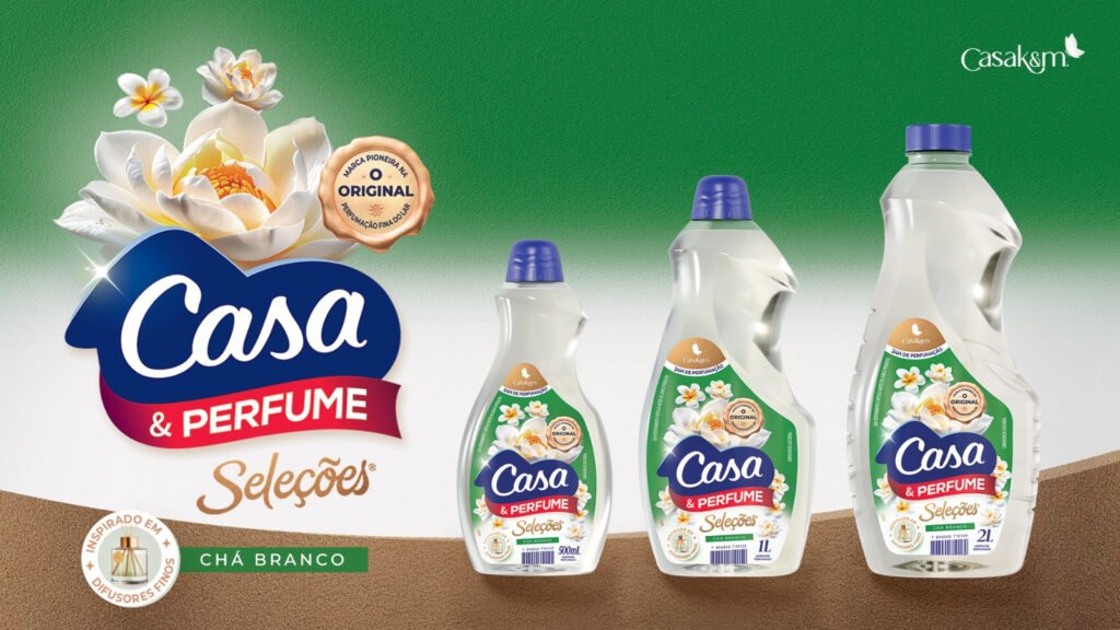 A Casa & Perfume, marca pioneira em perfumação fina para o lar, lança a fragrância Chá Branco, novidade que inaugura a linha Seleções, criada para traduzir fragrâncias inspiradas nas tendências de perfumaria fina em produtos para o cuidado da casa. O lançamento chega ao mercado brasileiro a partir da segunda quinzena de março, nas volumetrias de 500 ml, 1 L e 2 L, e inaugura uma nova fase de inovação da marca, que também antecipa a chegada de outras fragrâncias para compor a linha, incluindo criações inspiradas em outros universos. Com tecnologia de fixação de até 24 horas e uma seleção olfativa sofisticada, a linha Seleções foi desenvolvida para transformar os cuidados com a casa em uma experiência sensorial inspirada em tendências do mercado de perfumes, além de sinalizar a expansão do conceito para novas categorias, como a linha Multiuso da marca Casa & Limpeza.