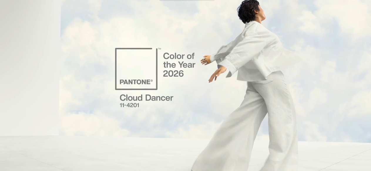 A Pantone divulgou nesta quinta-feira sua Cor do Ano 2026, tendência global que influencia design, moda, arquitetura, decoração e comportamento. Cloud Dancer (PANTONE 11-4201) é a tonalidade escolhida e se caracteriza por ser um branco suave, arejado e elevado, descrito pela marca como “um sussurro de calma e paz em um mundo barulhento”.