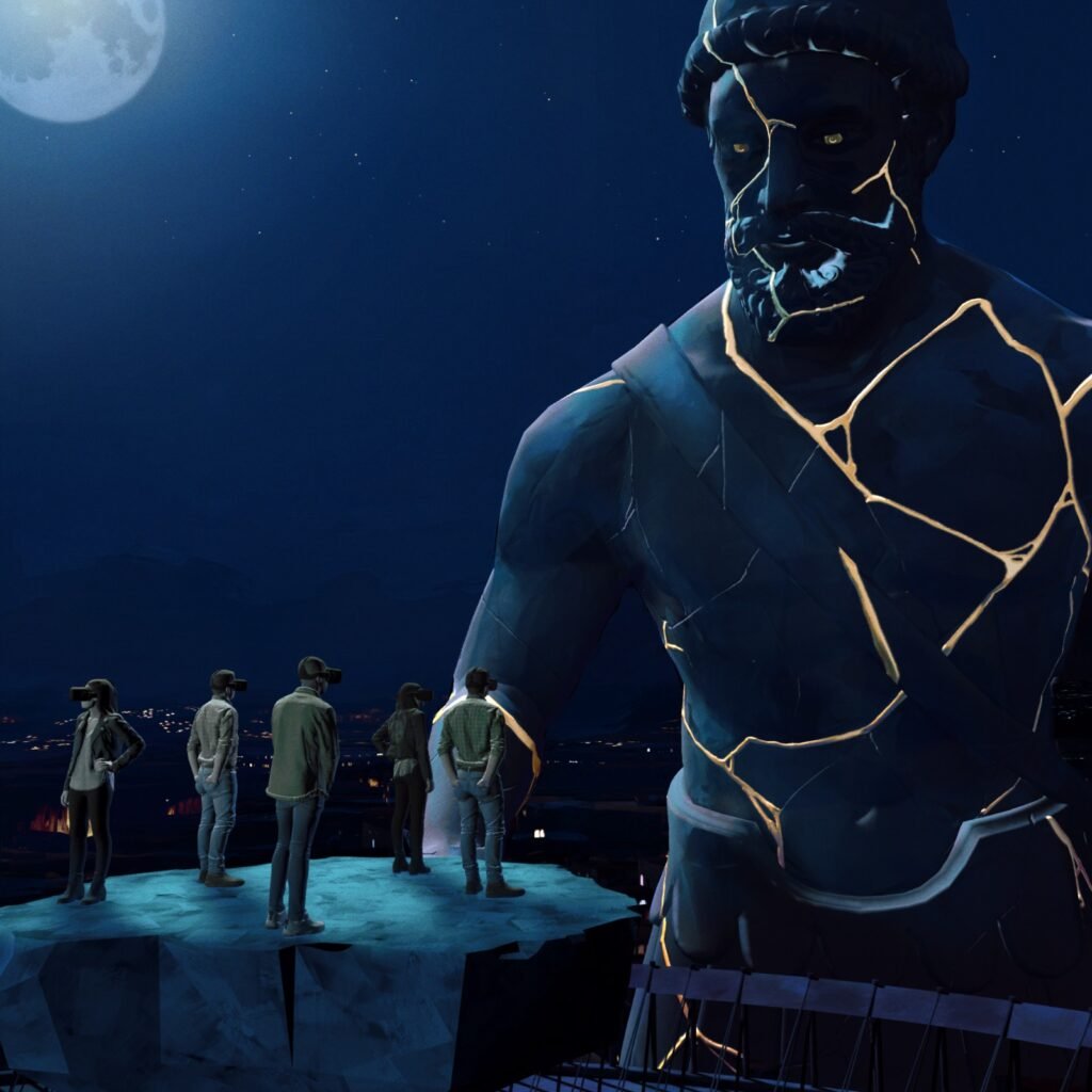 Um dos principais momentos da exposição é a experiência em metaverso, com duração superior a 30 minutos. Equipados com óculos de alta definição 4K, os visitantes entram em um ambiente virtual compartilhado, onde podem interagir entre si e com os elementos da cena.