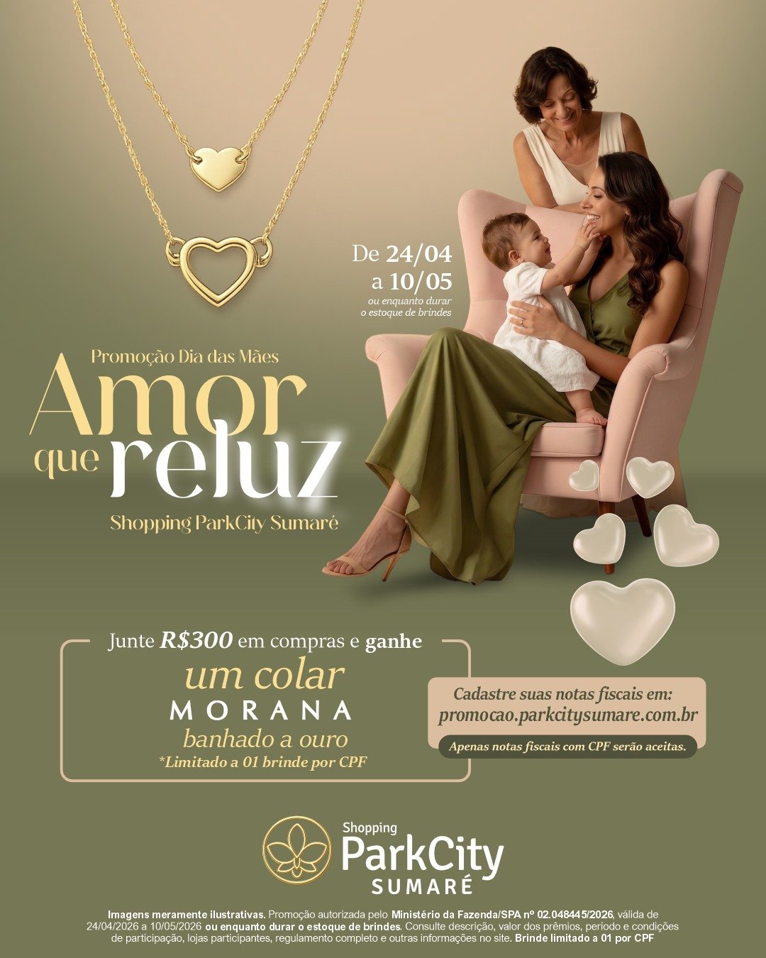 “A campanha foi criada para valorizar não apenas o ato de presentear, mas também para celebrar o amor e todo o carinho que o Dia das Mães representa. Delicado, o colar simboliza o afeto materno. Desejamos que os nossos clientes levem para casa não apenas presentes, mas também uma recordação afetiva desta data importante”, comenta Gisele Alvares, Coordenadora de Marketing do Shopping ParkCity Sumaré.