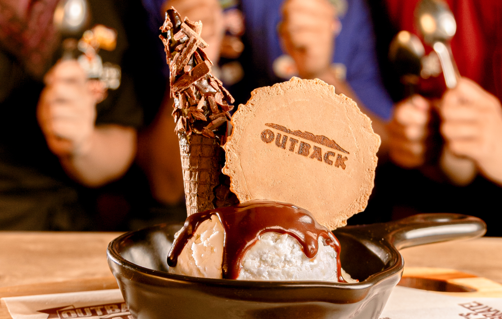 Muito além de um ritual, o momento do “Parabéns” no Outback é um espetáculo à parte. A equipe se reúne em volta da mesa, canta com empolgação contagiante e entrega uma sobremesa personalizada que não está no cardápio: um sorvete de creme servido em uma casquinha de waffel recheada com calda de chocolate, raspas de chocolate e o nome do aniversariante escrito à mão, criando um #MomentoOutback único.