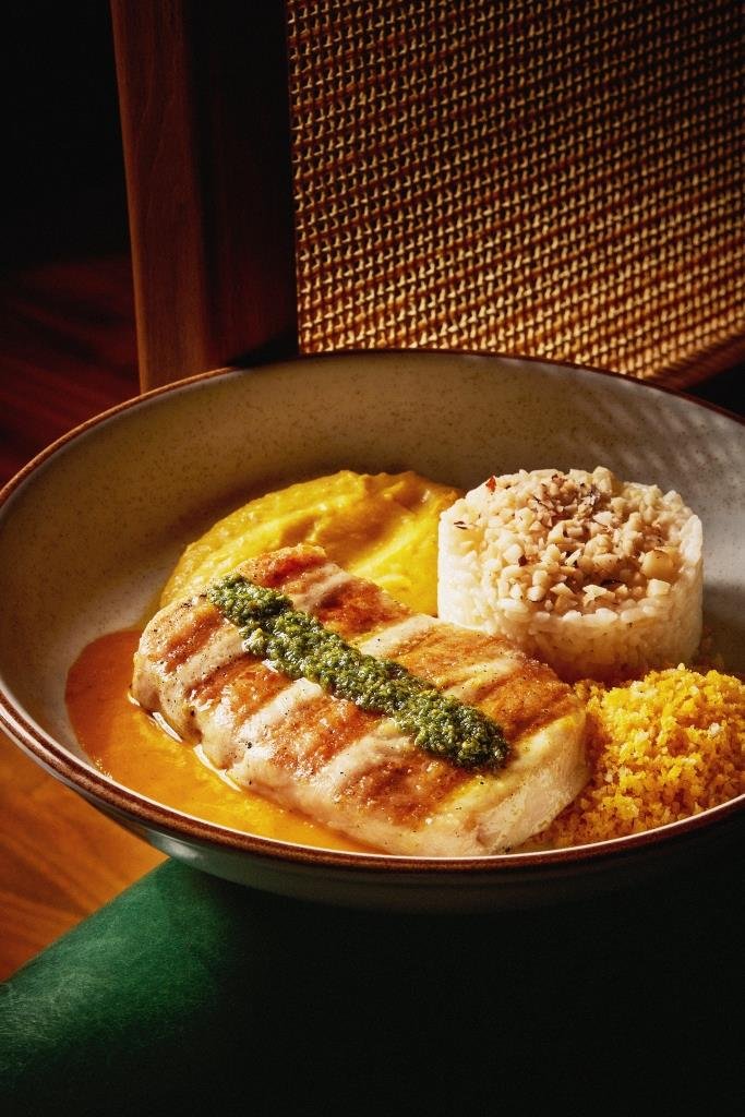 Outra sugestão, menos tradicional, é o Pirarucu Amazônico, servido com purê de banana-da-terra, arroz branco com castanha-do-pará e farofa de urucum, levando todo o sabor do Norte do Brasil para o menu da casa. Para quem prefere frutos do mar, a dica são os Camarões na Brasa, servidos com Risotto Nero di Seppia e molho cítrico de limão.