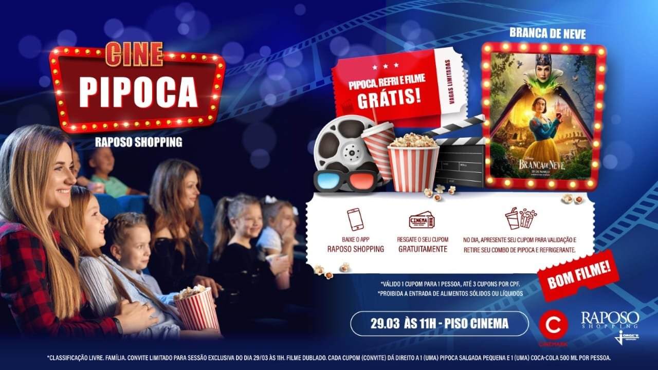 O Raposo Shopping preparou uma experiência cinematográfica imperdível para os seus clientes. No dia 29 de março, às 11h, o Cinemark recebe uma sessão especial da adaptação live-action de “Branca de Neve”, inspirada no clássico da Disney de 1937 e no conto dos Irmãos Grimm. O evento faz parte do projeto CinePipoca, que proporciona uma exibição gratuita e exclusiva para todas as idades, acompanhada de um delicioso combo de pipoca e refrigerante.
