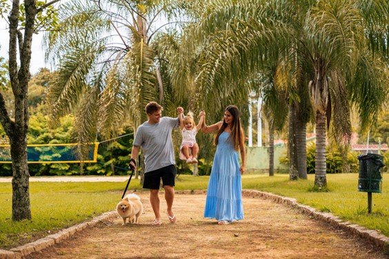 Além das áreas específicas para pets dentro do hotel, é possível encontrar piscinas, playgrounds, salão de jogos, quadras esportivas e muito mais para entreter toda a família.